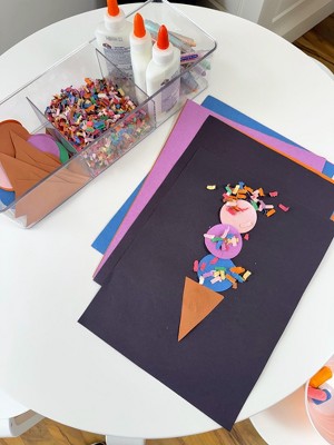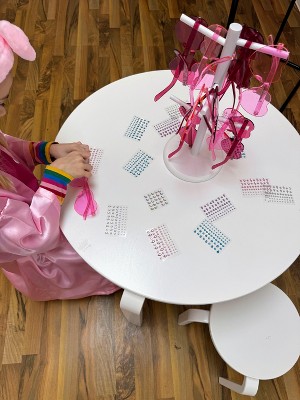 Love this beautiful table & the 4 stackable stool chairs that come with it. No corners for kids to bump into makes it a perfect play space table. The diameter & height gives the kids (& us adults) plenty of room to build & play on together, while not taking up too much space. The stools can be all tucked underneath the table when we need floor space. & unlike most tables that come with 2 chairs or none, love that this comes with 4, so that friends & family can join the kids at the table. We have other furniture & toys from Guidecraft & are huge fans of their well thought out & beautiful kids’ furniture & toys.