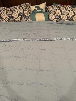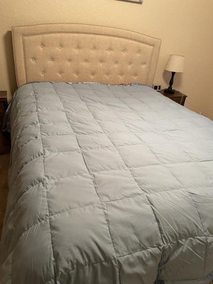 [This review was collected as part of a promotion.] This down blanket is good for all seasons since it’s thin and cool to the touch. It’s soft and the trim is a nice touch being a more satin-type material of the same color. Nice sky blue color that I love!