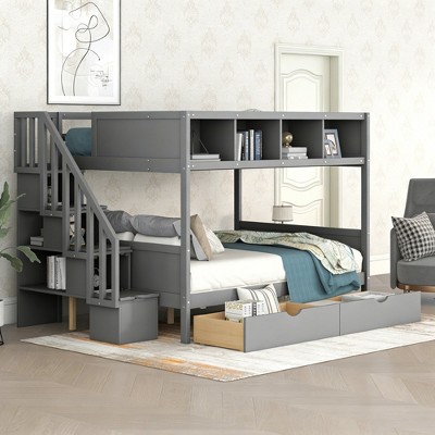 Twin over Full Bunk Bed with Shelves, Storage Staircase and 2 Drawers, Espresso - ModernLuxe