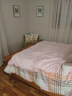 - DECORATIVE POMPOM FRINGE BLANKET: Accented with beautiful pom pom ball tassel, this cute boho blanket is visually appealing and adds a touch of sophistication to mix and match home, farmhouse, bedroom dcor. The fleece blanket complements and accents any living room, college dorm, work office armchair. Also perfect as a decorative bed runner or bed scarf, its light weight construction and silky feel make it a versatile choice for all season, car trip, travel, and house use.