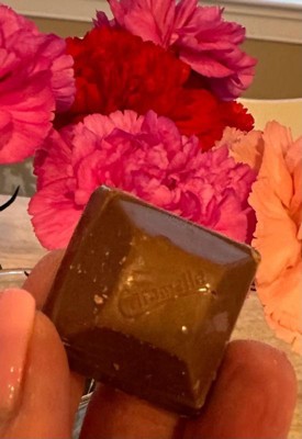 These are my favorite chocolates the packaging alone is bright and inviting. The individual packaging makes great for storing and not haven’t to worry about finishing in one sitting. The chocolates themselves are very brittle and soft and the Carmel is very sticky and sweet! They melt right in your mouth.