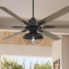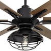 72" Casa Vieja Industrial Outdoor Ceiling Fan with LED Light Remote Control Matte Black Oak Wood Cage Damp Rate for Patio Exterior