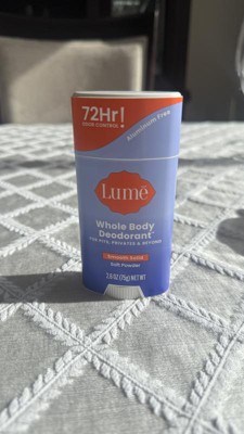 [This review was collected as part of a promotion.] I’ve been using the Lume Soft Powder Solid Deodorant Stick and I really love it. The scent smells so good. It’s soft, clean, and has that fresh powdery smell that makes you feel like you just stepped out of the shower. What impressed me the most is how long it lasts. I feel fresh and protected all day without needing to reapply. It glides on smoothly and feels very comfortable on the skin, not sticky or heavy. Great product.
