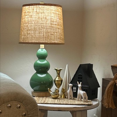 Nautical Green Table Lamp with Burlap Shade and Circle Faux Rope Finial - StyleCraft: Polyresin & Glass, UL Listed, No Assembly Required