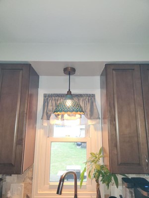 [This review was collected as part of a promotion.] This pendant light has such a unique look and I’m glad I chose it. I love the blue patina. The fixture was easy to install and has the ability to be shortened to fit your needs. Easily wipes clean……..