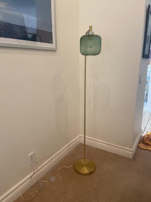 [This review was collected as part of a promotion.] The Elaine 62.75 inch Brushed Gold-Colored Floor Lamp with Green Contoured Glass Shade is gorgeous and fits in great with my modern library situation. I am using it next to my sofa as a reading lamp and it is working out well! The green shade adds a bit of color to my otherwise white furniture. Its the same color as my cactus collection!
