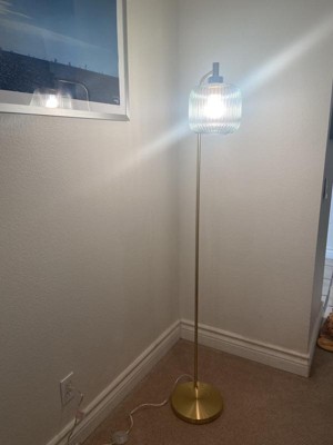 [This review was collected as part of a promotion.] I love this floor lamp, it’s so beautiful and provided an immediate upgrade to my space. The lamp is 62.75 in hight and brushed gold colored. The globe shaped glass is a beautiful jade green. The quality of the floor lamp is great and it is very easy to install. The lamp also has a press to touch foot switch and is not dimmable. A 40 Watt light bulb is recommend but needs to be purchased separately. The light of the lamp is quite bright and I can read my books easily using it. I am so happy that I got this floor lamp and already got lots of compliments from family and friends.
