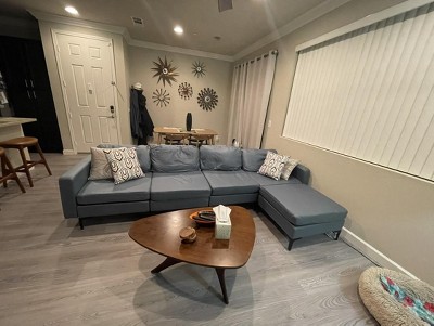 Oopsie on us for buying a couch online because of the enticing price. We got what we paid for. It’s super uncomfortable. The back cushion does not have adequate back support so I feel like I’m not sitting but lying and straining my neck to look forward. The material is as described but never experienced fabric leather so doesn’t really wipe dog hair or water spills easily. This couch is also meant to be against a wall to hide the ugly electrical part. We wish we knew that because the way we have to set our seating the back is exposed. We have buyer’s remorse and the return policy for furniture at Target is a hassle so I recommend find something else.