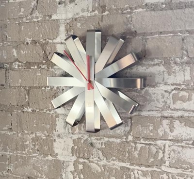 I love the Umbra Ribbon Wall Clock in silver! The stainless steel finish gives it a sleek, modern look that stands out without being too bold. It works perfectly as both a functional clock and a statement piece of décor. It’s silent, which is a huge plus—no annoying ticking sounds. The size is just right, making an impact without overwhelming the space. It was also easy to hang and feels well-made. If you’re looking for a stylish and minimalist wall clock that doubles as art, this is a great choice. Highly recommend!