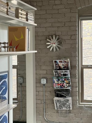 I had seen this over a year ago when I was making a different purchase on a Umbra and saved it. When my old kitchen clock went out & a new battery wasn't going to help, I immediately ordered this clock. Cool design of black with stainless works well with my contemporary look throughout my home, especially in the kitchen with stainless blinds in the window below. Have many other items saved, looking to add more Umbra products.