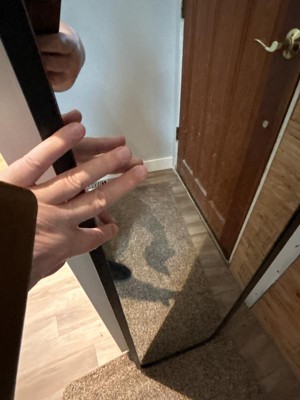 Surprised by all the good reviews! I've had this mirror for over a year, and it leaves dark black marks over any white wall it leans against. I've gone through a few magic erasers because of it and plan to put it out on the street soon!