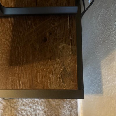 • Made of laminated particleboard, the distressed woodgrain finish pairs with the sturdy metal frame for a gorgeous statement piece