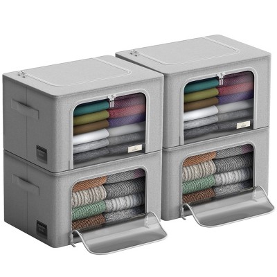 These are perfect for storing my folded sweaters during warmer weather. I added a small cedar 'block' in each and still fit 8 folded sweaters in 1 unit. They also fit very nicely on a closet shelf and the window allows me to see what I have inside. The metal framing makes them super sturdy and perfectly shaped.