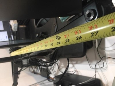 This was a great solution to having two independent monitors standing next to one another. Not only are the two stands gone, but the monitors are raised up, creating additional desk space underneath.
