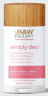 Raw Sugar Simply Deo Solid Deodorant - Beach Rose + Aloe - 2.7oz: Under Arm, Normal Skin