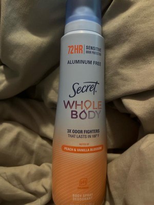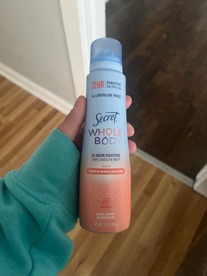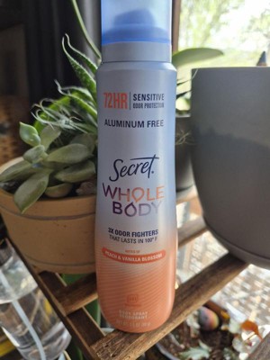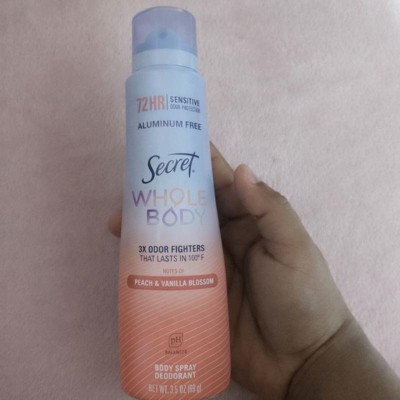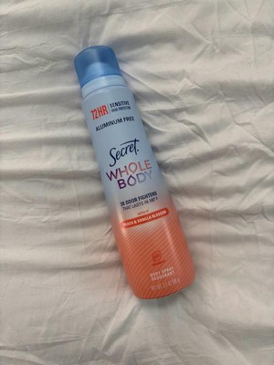 Secret Whole Body Deodorant Spray - Peach & Vanilla - Aluminum-Free 3.5oz: Body Application - Feet, Under Arm, Groin Area