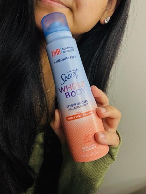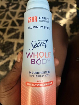 Thank you for your amazing review of Secret Aluminum Free Whole Body Spray Peach & Vanilla🍑