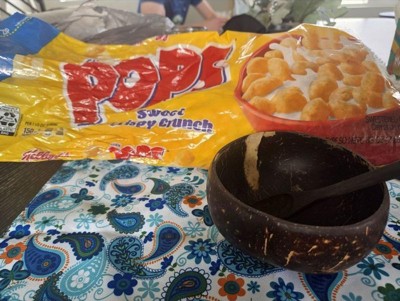 [This review was collected as part of a promotion.] Corn Pops is such a classic! It's been one of my top 5 cereals of all time. I love having it with milk in my cute coconut bowl as pictured (empty, I know. That was my 3rd bowl lol) or mix it with coconut or strawberry yogurt as an extra treat to keep me full and energized throughout the day. Or, right out of the bag while watching a movie to replace popcorn (it smelks yummy!). I couldn't pass on the opportunity to eat one of my favorite cereals ever!