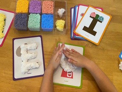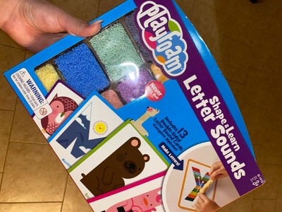 [This review was collected as part of a promotion.] This letter sound set is such a fun educational toy that helps kid work on identifying and shaping their letters while still making it playful . The playfoam is easy to shape and easy to pull out of the container. My 5 year old was able to easily mold the letters for the cards. I would say my only area my son wasn't a fan of is the cards are double sided so he can't see all the letters at once. This is the perfect we are stuck in the house today so let's making learning fun activity .