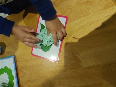 [This review was collected as part of a promotion.] I really enjoyed playing along and watching my son enjoy playing with the foam and looking at the fun pictures and practice asking for what color would he like to play with next just the only thing I wish it had some type of sound to it cause my childs with me everyday all day so a different voice catching the child's attention but overall great product.