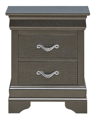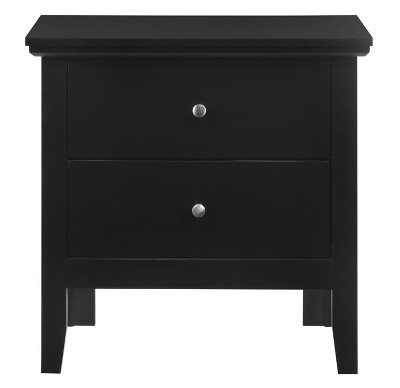 Assembled 2 drawer nightstand is finished in real wood veneers over manufactured and solid wood. Drawers move on center supported metal guides and are dovetailed front and back. Corner blocks are utilized to support drawer bottoms. Additional case pieces are available as well as matching beds.