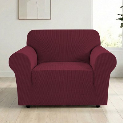 2pc Stretch Pique T Cushion Chair Slipcovers Garnet - Sure Fit: Polyester & Spandex, Machine Washable, Indoor Use