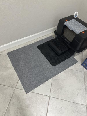 This cat litter mat is perfect for my needs. I have my litter boxes in an open cabinet area, and when the cats jump out, litter goes everywhere. I keep this litter mat on the floor in front of the cabinet. It has a good grip so it doesn’t move around. I use my light, handheld vacuum on it.