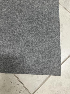 Lightweight litter mat that has a neutral color. This was used on a carpeted floor, which made it not stay in place very well. It would probably be better used on a hard floor surface. It caught litter decently but would tend to bunch up and the litter would spill off