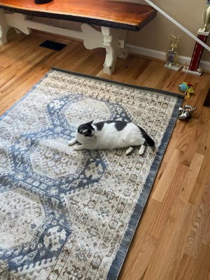 We bought this rug after we got new living room furniture and it is perfect for our space. We love the colors and the quality. Journey, our cat, approves too!