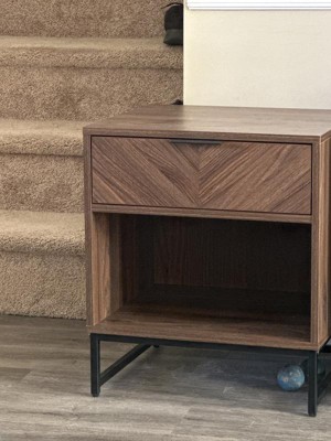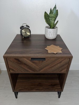 Review of Kensi Side Table | Open Cubby | Herringbone Wood Finish Warm Walnut-Matte Black