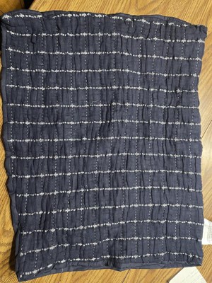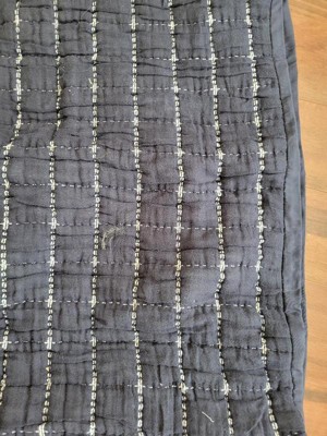 I received this product for free from the Hey, Bullseye sampling program in exchange for my honest review. This arrived with stringy stretchy fibers, white lint and a clump of batting stuck to it. The crinkly fabric is soft and give the appearance of washed and used even though new. The color and pattern are nice and once yu get all the stuff picked off it actually looks nice on the bed. @Target #heybullseye