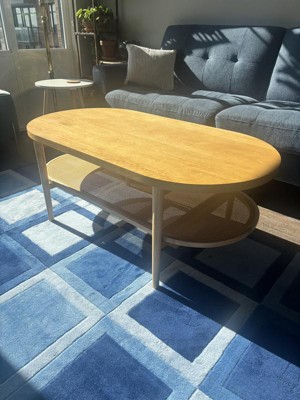 Wood & Rattan oval coffee table