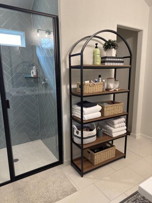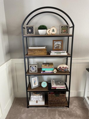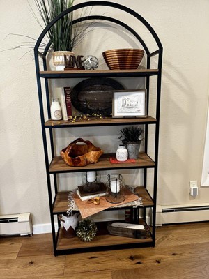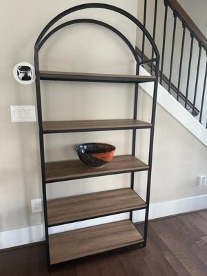 72" Haven Wood and Metal 5 Shelf Arch Bookshelf Reclaimed Oak/Matte Black - Nathan James
