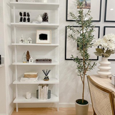 85" Theo 6 Tier Wood Wall Mount Ladder Bookshelf Rustic Oak/White Metal - Nathan James