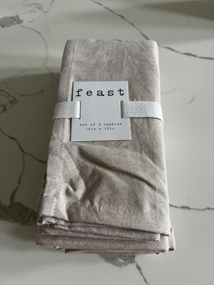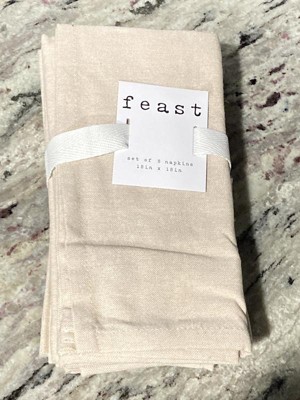 Kaf Home Overbook Feast napkins (set of 8, 18i x18in) are a great set of napkins. Loving the neutral color they go well with many other colors in our decor. They're made very well, stitching is very well done, made to last. They do just as they should and work very well , they soak up any moisture on your hands -& food. These napkins look & feel of high quality. They wash well. They also look very great on the dinning room table. My kids always go through many disposable napkins & with these we eliminate that & these save me money. I would definitely recommend these napkins, they look great & are very functional & will save you money.