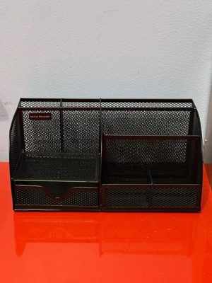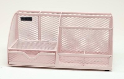 [This review was collected as part of a promotion.] This desk organizer is a great size and fits everything I need on my desk perfectly for a quick grab! I love the metal mesh look and it allows you to see everything you might need quickly and accessibly.