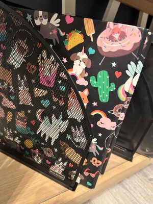 [This review was collected as part of a promotion.] The mesh organizers are a decent size and hold a lot of papers. I like the mesh so that you can see what is inside still. The back is completely open except for a little tab to hold your papers in place. They are not very sturdy and got damage some during shipping. They still work and get the job done