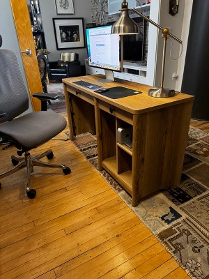 I purchased this desk for my home computer. It looks great, is the perfect size, and is solid. I have always bought Sauder furniture because of its price and quality.