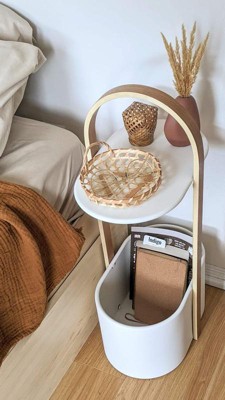 A modern solution for messy cables and storage, Bellwood storage side table is both a side table and cable management in one. Made of metal and wood, this side table can be used in any space to provide both multi-purposeful and sophisticated storage. Bellwood side table and cable management features a hook under its top table to neatly hold your device’s charging cord and an opening on the bottom for power cables to seamlessly stem through. Its tabletop provides the perfect spot for your device or a glass of wine, while its underneath storage container works great for cables or larger items like blankets or books. Measures 13.88 x 9.5 x 27 inches (35 x 24 x 68.5 cm). *For best care: use coasters to avoid direct contact to wood surfaces and if you experience a spill, wipe with a damp clean cloth immediately. Wipe surfaces with water only using a damp clean cloth.