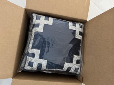 16"x16" Luminous Greek Key Border Square Throw Pillow Champagne Velvet - Sparkles Home: Luxury Knit, Feather Filled, Removable Cover