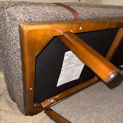 It’s cute, not green like in the picture, definitely true to the label of “brown”. The legs, no matter how much you tighten them will wobble and be askew with even moderate use. Bummed cause I like it even though my husband things the Boucle just looks like pilling and my sister says it looks like a suitcase, haha. The top cushion is velcroed on and actually has a zip so theoretically you could take it off and wash it which is cool tho not sure how well that would work.
