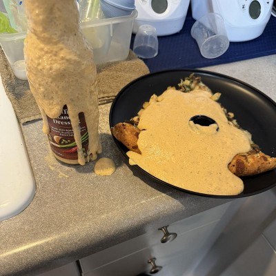I rarely write product reviews, but this one earned it — unfortunately, not in a good way. When I opened this dressing, it literally exploded upon removing the cap due to built-up pressure inside the bottle. Not exactly the “buffalo ranch experience” I was expecting. The smell was immediately rancid, despite the product being well within its expiration date. This makes me seriously question the quality control and shelf-stability testing of mixing buffalo sauce and ranch in a sealed, shelf-stable product. Something clearly went wrong here, because condiments should not behave like shaken soda cans. Beyond the shock factor, the explosion ruined a very expensive Lululemon sweatshirt I was wearing at the time. Target’s resolution was a $3 refund for the dressing — which technically covers the product, but not the damage caused by what appears to be a defective or compromised item. I’m sharing this less as a rant and more in hopes that someone on the product or quality team actually sees it. This feels like a manufacturing or safety issue worth investigating, not just a bad bottle. Until quality control improves, I would strongly recommend skipping this one — unless you enjoy surprise condiment explosions.