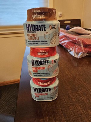 [This review was collected as part of a promotion.] We love our Ninja Thirsti and all of the flavors are great! This HYDRATE variety pack (Watermelon Lime, Strawberry Kiwi & Coconut Pineapple ) is perfect to drink alone or mixed with any of the others available. The ability to modify the level of flavor makes it easy to get the perfect taste and quenches our thirst. This has significantly reduced our spending on single sparkling waters.