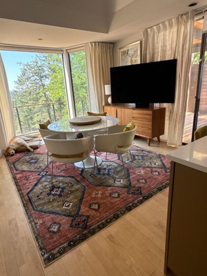 This rug has received positive feedback for its vibrant colors, softness, and affordability, making it a great choice for various spaces in the home. Many guests appreciate its washable feature, which is ideal for households with pets. While some noted color discrepancies and a thin feel, overall satisfaction with the design and comfort has led to repeat purchases and recommendations.