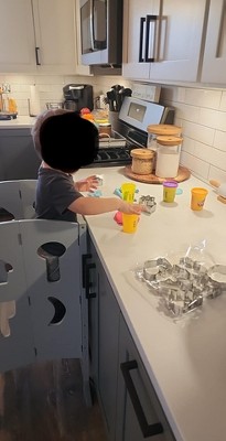 This is perfect for our small kitchen. When he's not using it, it folds up and tucks in beside the refrigerator. He helps make food, play with play doh , his play countertop sink (With water)