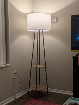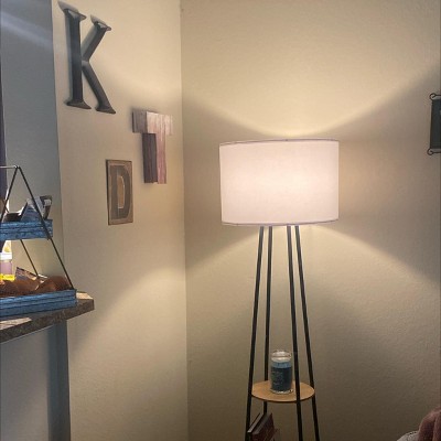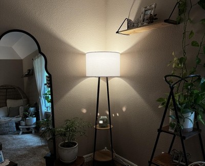 Floor lamp with Shelves - Room Essentials™: Black Metal, Linen Shade, ETL Listed, 62" Height