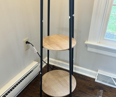 The lamp design is cute, however the quality is cheap. The “wood” for the shelving is easily scratched. For example, tape was placed on the surface as part of the packaging. When pulling the tape off, part of the finish was taken off. Another small annoyance was the difficulty getting the labeling stickers off each part of the lamp. Although these stickers are useful for construction, they were extremely difficult to remove.