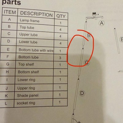 Product was manufactured incorrectly so I am unable to assemble it. Lamp is cute but i can’t put it together because of a manufacturer error (see image below). Whoever put these parts together put part c on upside down so you can’t screw it to part b. There is no way to correct this as there is a chord running through these pieces. Will be returning and hopefully the replacement is built correctly. Crossing my fingers but I’m pretty annoyed as i just mentally prepared myself to assemble this and took out every single piece from the box and now I have to somehow fit it all back in the box, return it, order a new one, pray the new one is assembled correctly at the factory then start again to put it together. Lots of time wasted on a lamp. 😑.
