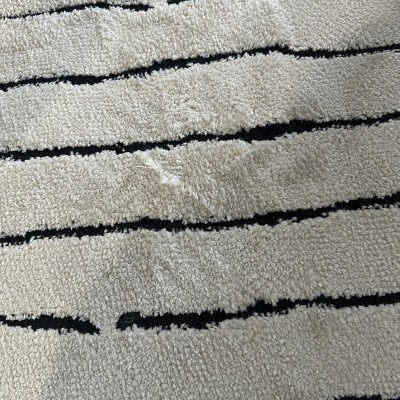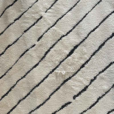 Defective product. When we opened the package, no defect was visible. However, when we reached the end of the roll, we noticed a major stitching defect. This mistake becomes even more noticeable on a white carpet.