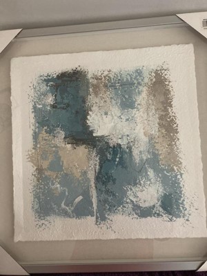 [This review was collected as part of a promotion.] This piece of abstract art is absolutely beautiful in person. The pictures doesn’t quite do it justice. The colors compliment some of the other colors in my living room so it will eventually hang there, I’m just not quite sure where exactly I want to put it. I love the matte silver frame and then the picture itself has some sparkly silver in it. It’s beautifully mounted and framed and will really look great when hung. I love this artwork!